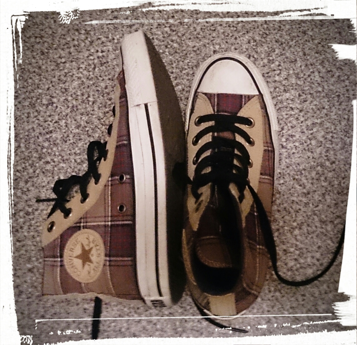 そして最近は、もう少し見た目重視で、こんなチェックのハイカットを履いております。