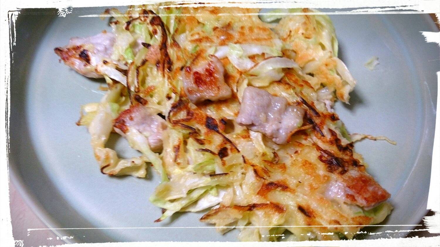 まあ、ソース・マヨネーズ・鰹節で見た目はお好み焼きになるので簡単だよ!